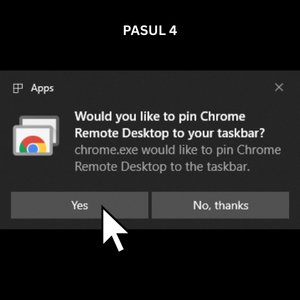 Se va deschide un prompt în care suntem întrebați dacă adăugam Chrome Remote în bara de jos a sistemului. Cick pe butonul YES. Pictograma este adăugată în Taskbar apoi se deschide interfața de utilizare.