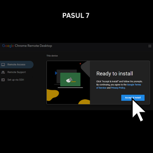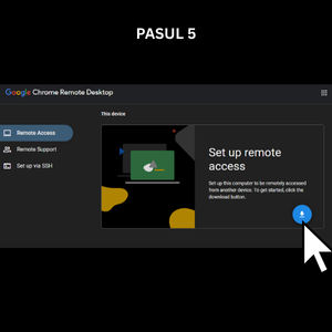 Din meniul lateral, selectează "ACCES LA DISTANȚĂ", apoi dă click pe butonul rotund, albastru "DESCARCĂ DESKTOP LA DISTANȚĂ CHROME".